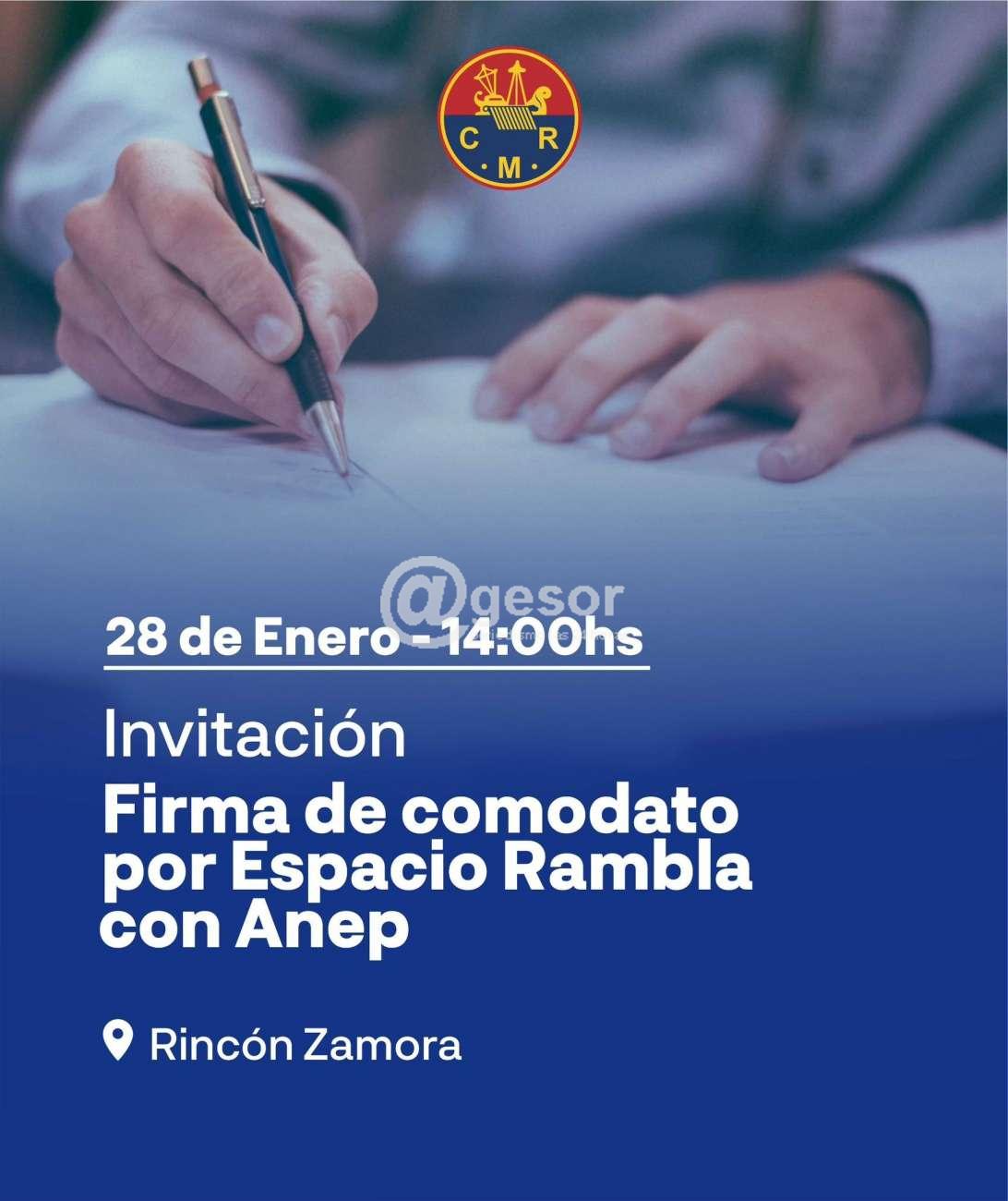 Este miércoes 28 de enero a las 14:00 horas, se llevará a cabo la firma del comodato por el Espacio Rambla entre el Club de Remeros Mercedes y ANEP.