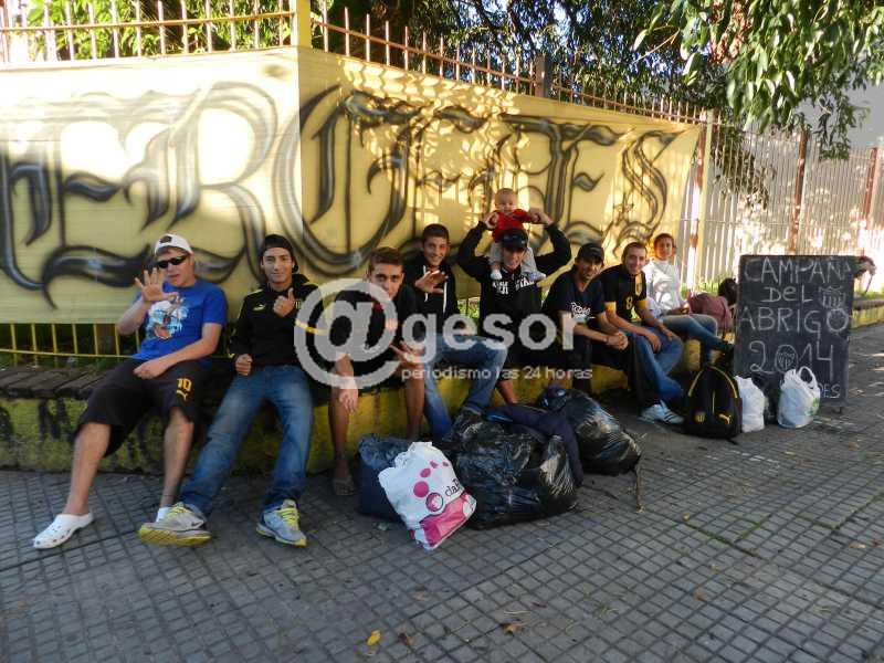 En la esquina de Ferrería y Artigas, integrantes de la Barra Mercedes de Peñarol de Montevideo, está llevando adelante campaña del abrigo para ayudar a familias carenciadas de cara al invierno.