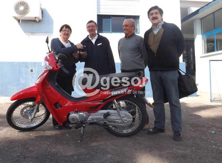 Con un motocilo marca Winner que se sorteaba se vio favorecido José Domínguez (con el número 4707), quien aparece en la foto de @gesor en el mismo momento que recibe la llave del vehículo, entregada por Gricelda Muñoz Maneiro, quien preside la Comisión de Apoyo. Les acompañan Jorge Eber Godoy y el Profesor Federico Barboza, integrantes de la misma comisión.