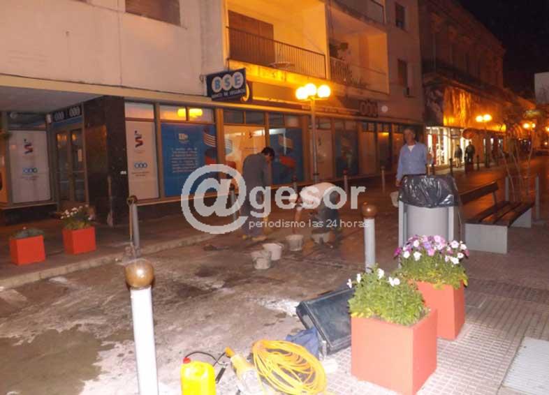 Personal de la Intendencia de Soriano ejecuta trabajos de mantenimiento en la semipeatonal de la zona céntrica de la ciudad de Mercedes, como lo pudo constatar la Agencia Soriano de Noticias, @gesor.
