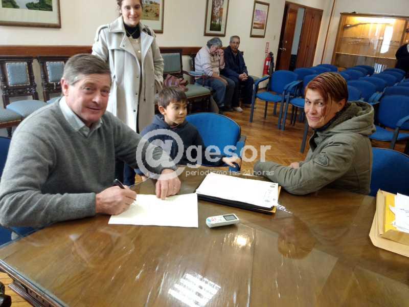 Este viernes el intendente Guillermo Besozzi se procedió a firmar junto al Secretario General, una veintena de escrituras de los hogares de vecinos del barrio "Aparicio Saravia" incluidos en el Plan de Regularización y Realojos.