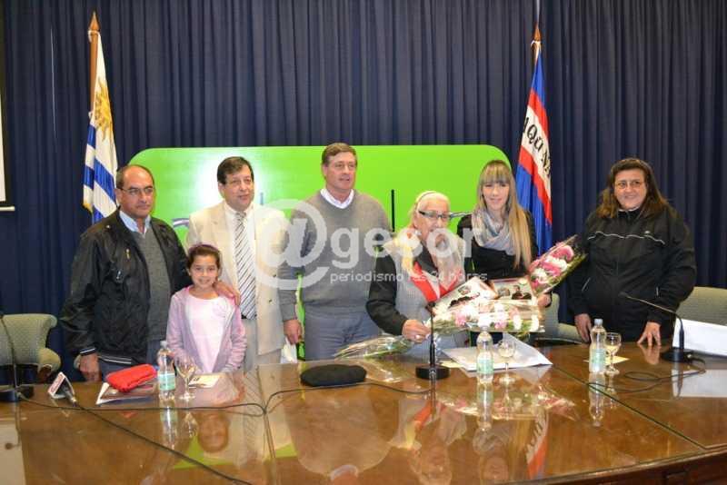 Durante la ceremonia que se llevó cabo en el Salón de Actos “Eduardo V. Haedo” de la comuna el Intendente Besozzi entregó varios obsequios a los descendientes de Artigas, entre ellos plaquetas, una bandera artiguista y una gigantografía con la imagen del Prócer.