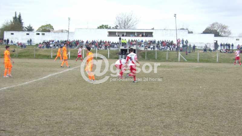 El último campeón del fútbol mercedario se puso en ganancia desde muy temprano, a los 5’ de juego por medio de Luis Rial al conectar en el área chica, con remate corto, un tiro libre que ejecutó de media distancia Carlos Bustillo, y que peinó Luciano Tomera.