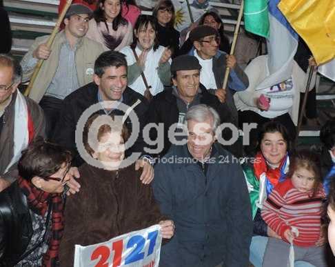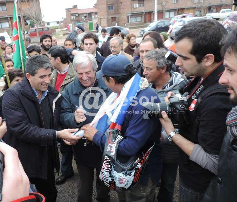 La fórmula presidencial del Frente Amplio visitó Mercedes realizando tres reuniones en diferentes puntos de la ciudad. Sobre las 16 horas el Dr. Tabaré Vázquez y Raúl Sendic llegaron al Barrio 33 Orientales donde dialogaron con los vecinos. Allí improvisaron un acto donde saludaron a los presentes y contestaron algunas preguntas, para luego firmar autógrafos y fotografiarse con los simpatizantes que se le acercaban. Algo similar hicieron en el otro extremo de la ciudad, en el Barrio Cerro, congregándose, minutos después en la esquina de Pozzolo y Ansina. Desde allí los frenteamplistas realizaron una caravana hasta el Club Racing donde se realizó una acto, con la particularidad que no tuvo estrado, como es habitual en los actos políticos, sino que se trató de algo más informal, donde según expresó el Dr. Tabaré Vázquez pretendían escuchar a los asistentes. Desde el auditorio surgieron algunas interrogantes, desde las relacionadas a temas económicos como otras de carácter social y cultural. Ante una pregunta concreta el candidato a Vicepresidente, Raúl Sendic, resaltó la importancia de “la cultura, y el desarrollo de contenidos para la formación de valores”, algo que “nunca la sociedad puede perder”. En tanto el Dr. Tabaré Vázquez expresó que un tercer gobierno del Frente amplio será “combativo con la violencia, pero también tremendamente combativa con las causas que la generan”.