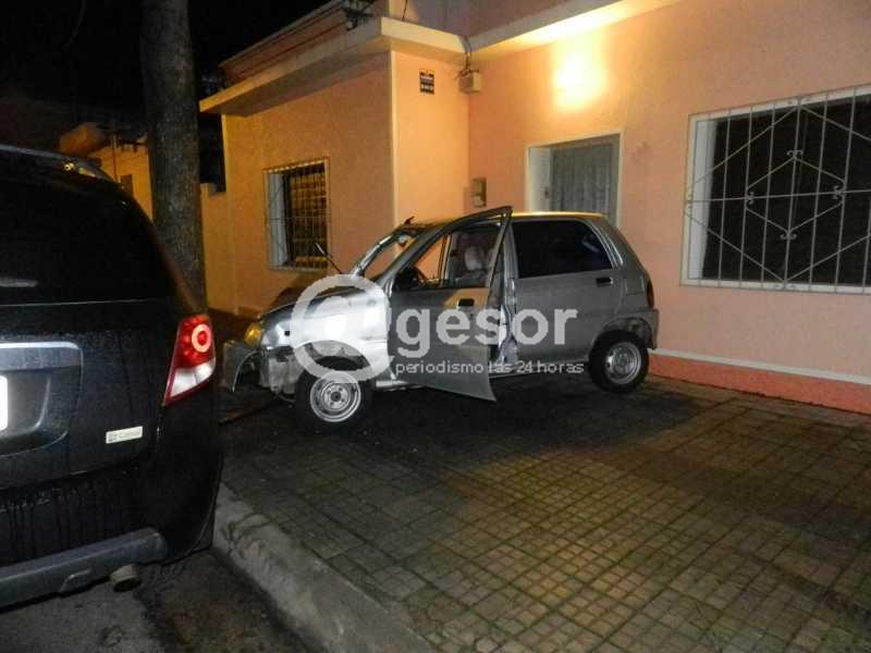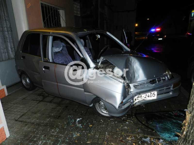 Alrededor de la 1.30 de la madrugada de este lunes se produjo siniestro de tránsito causado por un autmóvil Daihatsu Cuora KMA 2405 que era guiado por Cristian Colmán Tomey, el que por razones que procuraba determinar en el lugar la Policía Científica y personal de Seccional 1a. y de la Brigada de Tránsito, circulando por Sánchez de Este a Oeste, al pasar Rivera, se fue sobre la margen derecha subiendo a la acera, rayando una camioneta que se encontraba estacionada frente a la finca de su propietario, impacta contra el árbol existente en el lugar y la parte trasera queda tapando media puerta de ingreso a la casa de la familia Sosa.