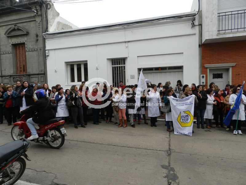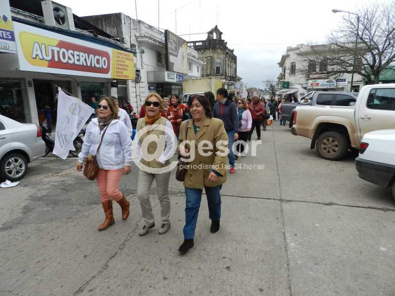 Posterior al encuentro en plaza Independencia los maestros, trabajadores y docentes jubiladas, marcharon por Colón, Rodó, Artigas y Ferreira Aldunate culminando frente a la sede de la Inspección Departamental de Primaria.