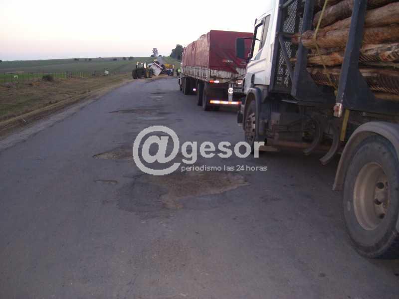 Los vecinos que se comunicaron con @gesor señalaron, "esto es lo que pasó a las 17.30 del viernes en la Ruta 12 km 81 por suerte sin lastimados, por que un auto que venía de frente pudo esquivarlo. Volcó la zorra del camión por los cráteres que hay, cortó el eje limpito, esto es una vergüenza, hasta cuándo nos preguntamos? Cuando haya víctimas fatalas? Por favor señores del MTOP hagan algo urgente y bien hecho!".