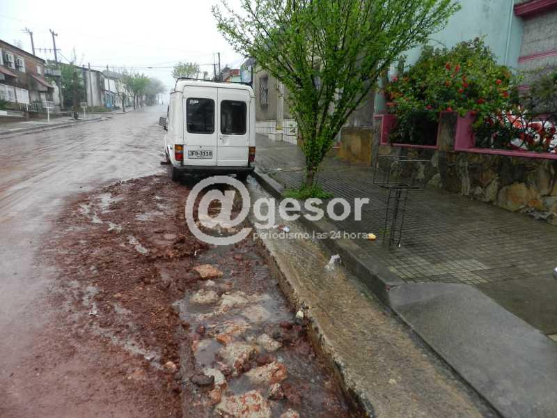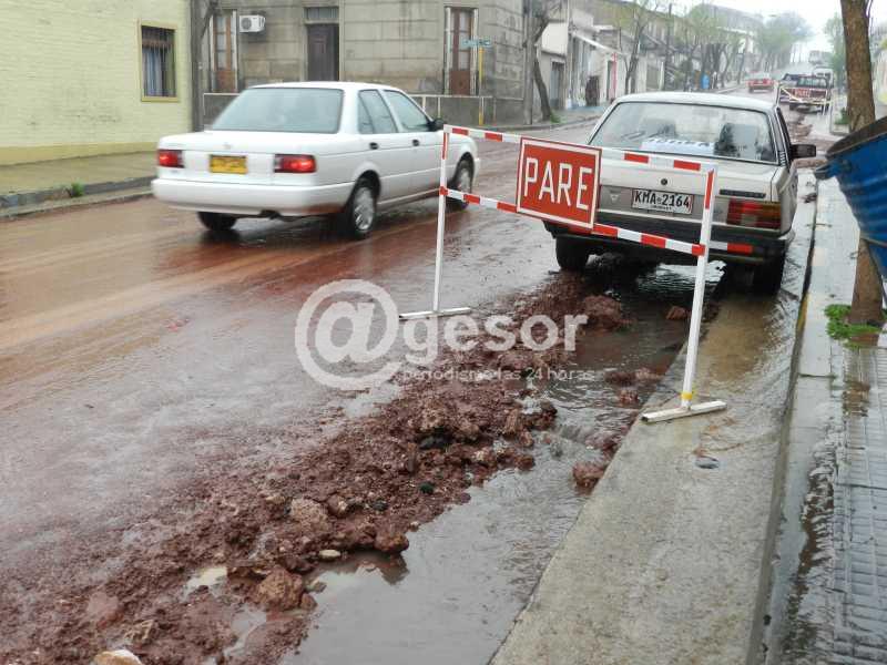Debido a las intensas lluvias que están ocurriendo en Mercedes desde el sábado, este domingo pudo apreciarse importante erosión causada en las dos cuadras de Varela desde Blanes Viale a Don Bosco que están construyéndose a nuevo por parte de la comuna.