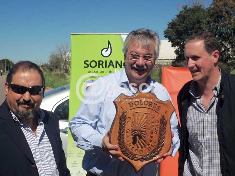 Fotografía de Alvaro Martínez, ministro Pintado recibiendo escudo de Dolores de manos del Alcalde Javier Utermark y el concejal Milton Mastandrea