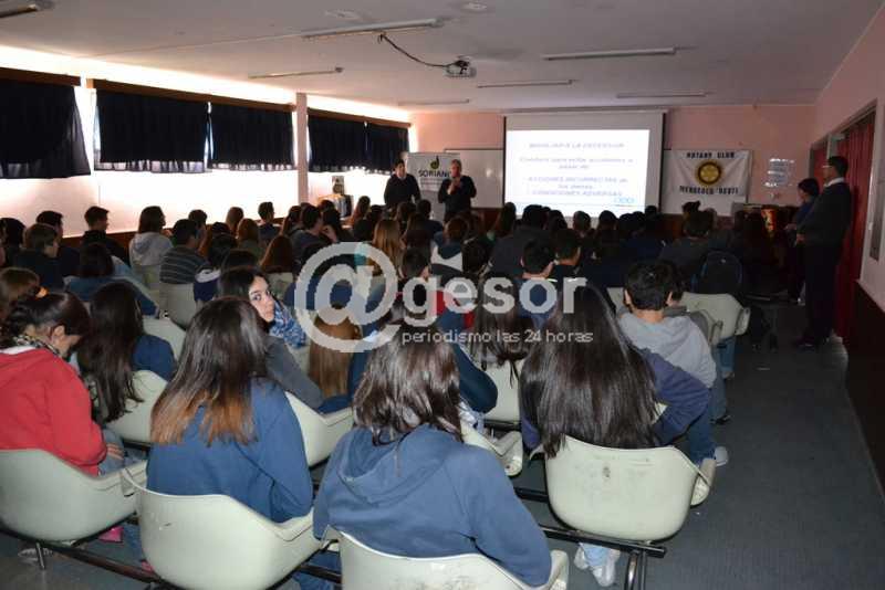 En doble horario, desde la hora 9 y a las 14:30 horas en el Instituto José María Campos de Mercedes se realizó un curso de manejo defensivo de motos y seguridad vial, dictado por el técnico prevencionista de Banco de Seguros del Estado, Jonathan Rodríguez.