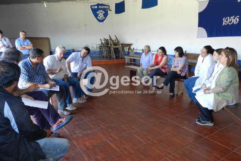 La maestra Alejandra Villalba del CAIF 56 estamos reunidos con la gente de Barrio Nuevo, con la Escuela y personal de la Intendencia para concretar en este espacio que cede el club una plaza que va a estar abierta para todo el público, que es uno de los objetivos de nuestro proyecto.