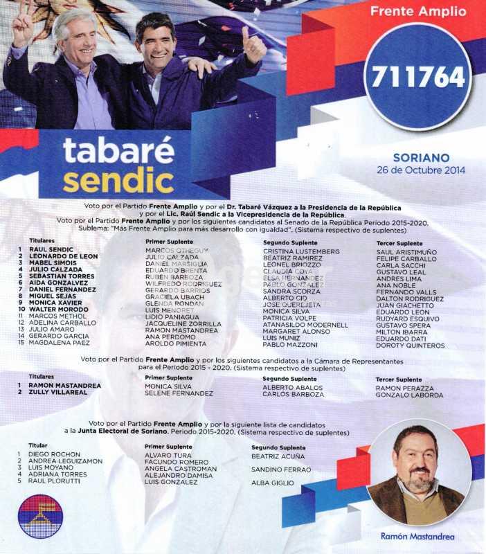 Aquellas personas que deseen votar por la Lista 711764 del Frente Amplio la pueden encontrar en la sede central del Frente Amplio en Mercedes, en Ferreira Aldunate entre Ituzaingó y Oribe, en la sede de la lista en Mercedes en Ferrería 1115 frente a plaza Lavalleja y en todos los comités de base del departamento.