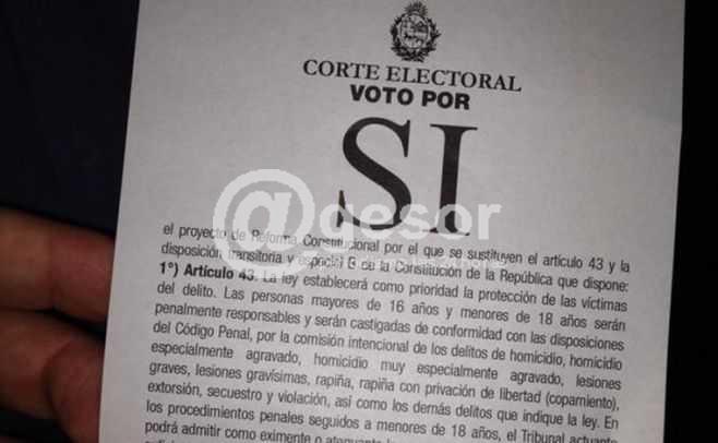 Varias papeletas del SI a la baja de la edad de imputabilidad aparecieron juntas en la misma mesa donde se encuentran las listas del Frente Amplio, en el circuito Nº 174 de Cardona, informó a Centenario el delegado de la coalición de izquierda en esa mesa receptora de votos. El hecho aconteció en la primera hora de elección, y se constató cuando la Presidenta del circuito solicitó a los delegados ingresar al cuarto secreto para la colocación de listas de votación de un sector del Partido Nacional. Fue en ese momento que se verificó la situación y se procedió a separar las papeletas de las listas.