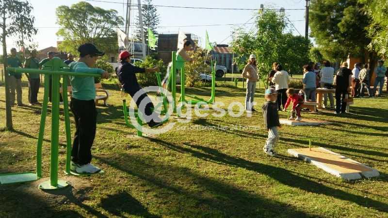 El espacio cuenta con una batería de aparatos de gimnasia al aire libre, que fueron fabricados íntegramente en Talleres Municipales.