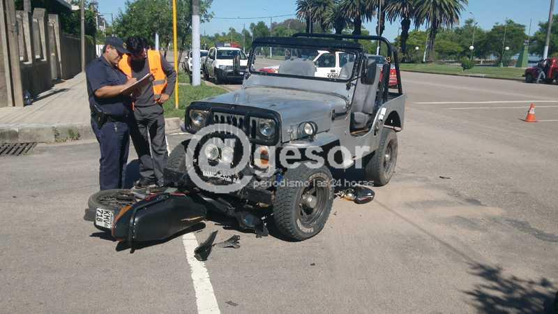 Un jeep y una moto terminaron colisionando en la intersección de Avenida Asencio y Haedo, en zona de la rambla de la ciudad de Mercedes.