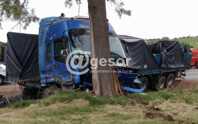 Tras el roce al vehículo estacionado el camión Fotón Auman ATA 2267 se cruza de senda y recorre varios metros hasta impactar con terraplén existente en la zona y a un árbol. El conductorde este vehículo resultó con lesiones leves estando conciente y respondiendo a los médicos que lo asistieron.