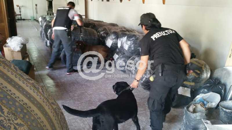 (*) En la fotografía se puede observar la labor del personal de Prefectura, junto a los perros adiestrados para constatar si en los envoltorios también había presencia de droga, lo que dio negativo.