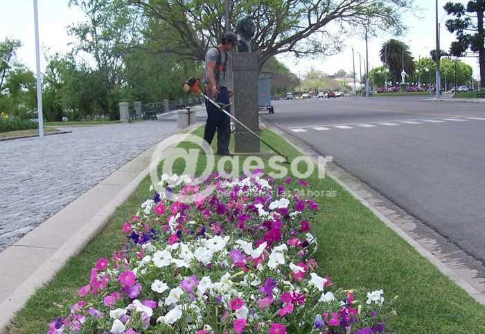 Se están repoblando con plantas con flores los canteros en plazoletas, se realiza corte de césped, podas, limpieza y se retiran troncos que quedaron atascados en la pasarela que une la ciudad con la Isla del Puerto.