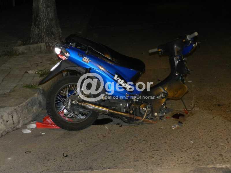 Por calle Rivas circulaba el Volkswagen Gol KMA 2526 conducido por Miguel Martínez de 53 años y al llegar a la intersección con Oribe es impactado en el lateral izquierdo parte delantera y en la puerta, por la moto Vital KMT 114 guiada por Julio Pérez Silva de 21 años. La violencia del impacto fue tal que se partió el trabuco de la moto quedando sin la rueda delantera y el conductor despedido por el aire, el casco quedó por calle Oribe a unos 25 metros y la moto quebrada, a un par de metros por Rivas.