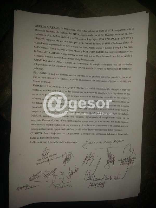 A pesar de lo desgastante de las negociaciones, los trabajadores organizados de Multi-Ahorro celebran el acuerdo que finalmente fue refrendado de manera tripartita en el Ministerio de Trabajo y Seguridad Social(MTSS), entre empresa, gremio y MTSS, que propone en su parte principal la formación de una comisión integrada por empresa y trabajadores para analizar desde el próximo 16 de enero en un plazo no mayor a 30 días, la situación de cada sucursal, en el intento de reestructura encarado por la empresa en la tercerización en la elaboración de alimentos.