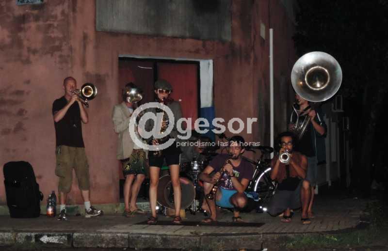 El pronóstico del tiempo vaticinaba que no era propicio la realización de espectáculos al aire libre, por eso la cuarta jornada del Jazz a la Calle se trasladó al Teatro 28 de Febrero. Por ese mismo motivo la organización decidió suspender los toques callejeros, pero los músicos igualmente desafiaron la adversidad e hicieron música en la calle. Trompetas, clarinetes, saxofones y tuba llenaron de música la noche mercedaria.