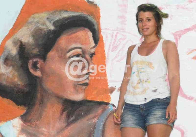 En la pared de la oficina de Turismo que da a calle 19 de Abril en Manzana 20, "está pintando Mariela Ajras que es de Buenos Aires, ha pintado muchísimo en distintas puntos del mundo, en México hizo murales a muy grande escala, también en Buenos Aires, la presencia femenina es fundamental". La propia Mariela cuenta @gesor "por lo general uso fotografías que sacó mi padre que era fotógrafo, habitualmente con familiares, aunque éste no es el caso, ya que estoy utilizando una fotografía de colección de la revista Life de la década de los '60 que recientemente la hiciera pública un conocido fotógrafo pero que no se tenía conocimiento de ella, se trata de un paisaje de playa en Mar del Plata, casi siempre me salen mujeres, no sé por qué..." (sonrie).