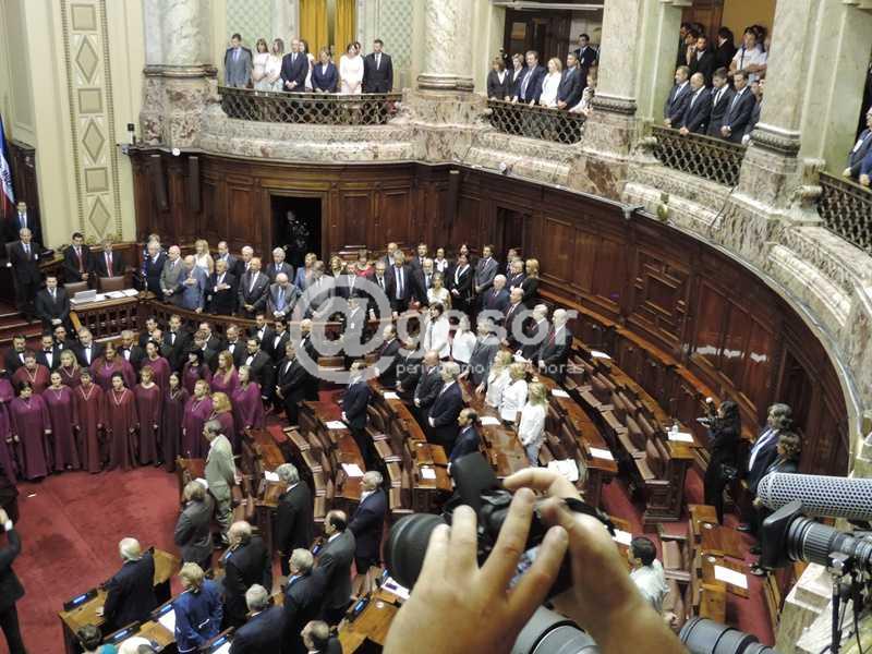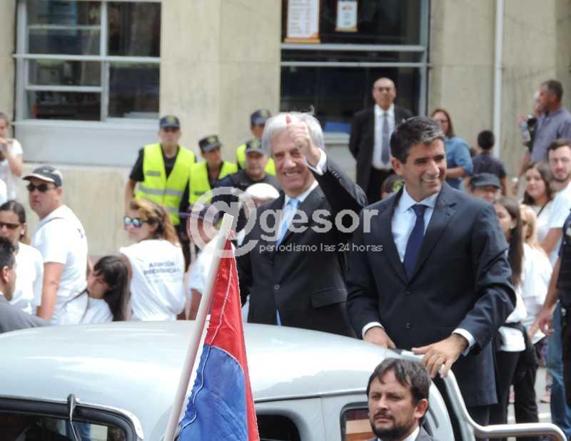 En Plaza Independencia el Dr. Vázquez pronunció un discurso escueto, limitándose solamente a saludar y agradecer por lo que consideró una distinción, el acceder por segunda vez a la Presidencia de la República.