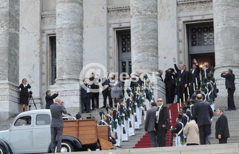 La caravana salió del Palacio Legislativo para llegar a Plaza Independencia donde Tabaré Vázquez y Raúl Sendic, en la caja de la camioneta Forson 1951-el vehículo de la juventud del Presidente-, saludaron a la gente que se sumó al festejo.