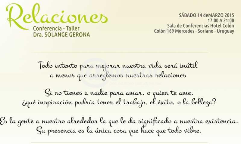 Relaciones- Conferencia/Taller, a cargo de la Dra. Solange Geroma.