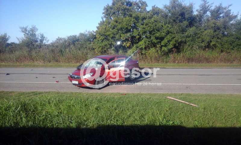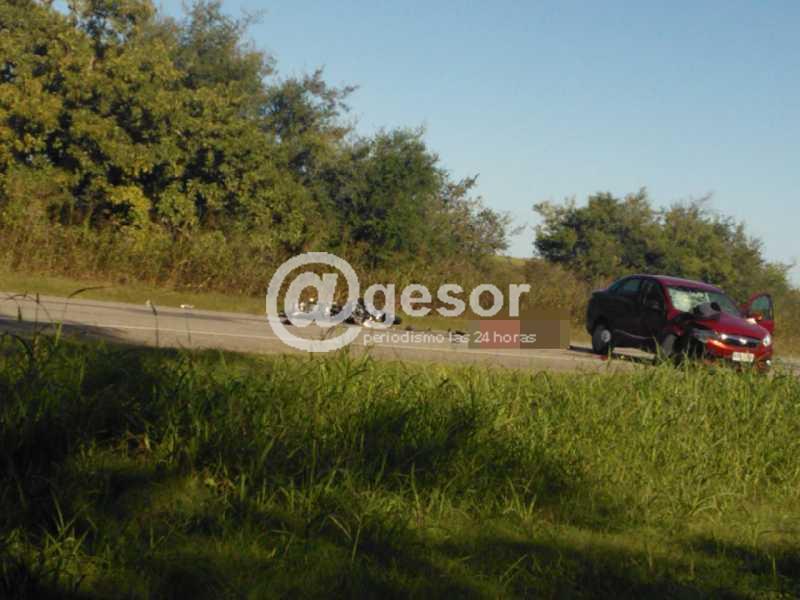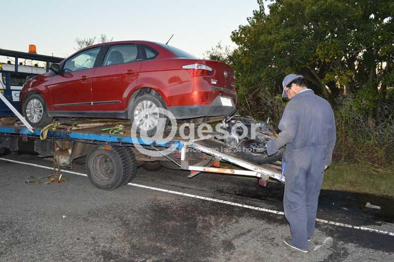 (por Martín Corujo) El hecho sucedió este sábado, como ha sido informado por @gesor, a la altura del km 294 de la Ruta 21 cuando el Fiat Siena KAA 1376 que se dirigía en la dirección de Nueva Palmira a Dolores era conducido por una mujer de iniciales M.R.B.C. aminoró la marcha para tratar de dirigirse a una capilla existente en el lugar, siendo encandilada su conductora al pretender cruzar el pavimento, no viendo que de frente venía la moto Yamaha de 600 cc matrícula IBQ 506, que era guiada por Pablo Deus Nebot de 29 años quien ante la violencia del impacto falleció en el acto debido a las lesiones recibidas.