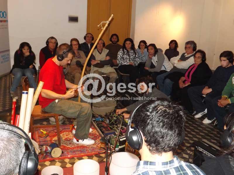 Unas 30 personas que se hicieron presentes en el lugar siguieron atentamente el espectáculo, cada uno de los asistentes con su par de auriculares, escuchando los sonidos que el músico hacía, la mayoría de ellos con instrumentos no tradicionales.