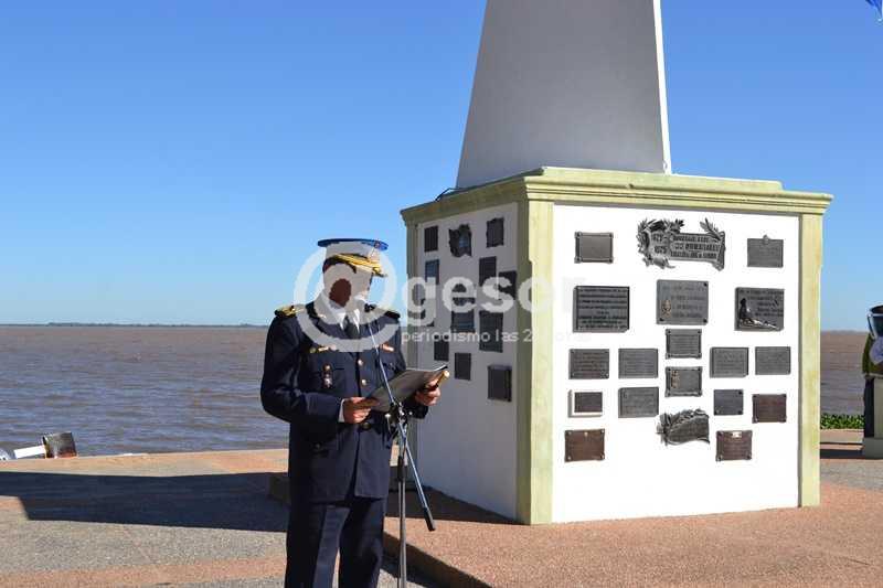 La parte oratoria estuvo a cargo del Jefe de Policía de Soriano, Inspector Gral, (r) Carlos Ayuto, mientras que un par de embarcaciones con la bandera de los 33 Orientales y la de la República Argentina llegaron hasta la playa homenajeando a los patriotas de 1825.