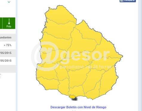 De acuerdo a la información divulgada por el Instituto Uruguayo de Meteorología (INUMET), a partir de la 2:00 de la madrugada de este sábado se espera el desplazamiento de un frente frío con actividad pre-frontal afectará gradualmente a todo el país desde el Suroeste al Noreste.