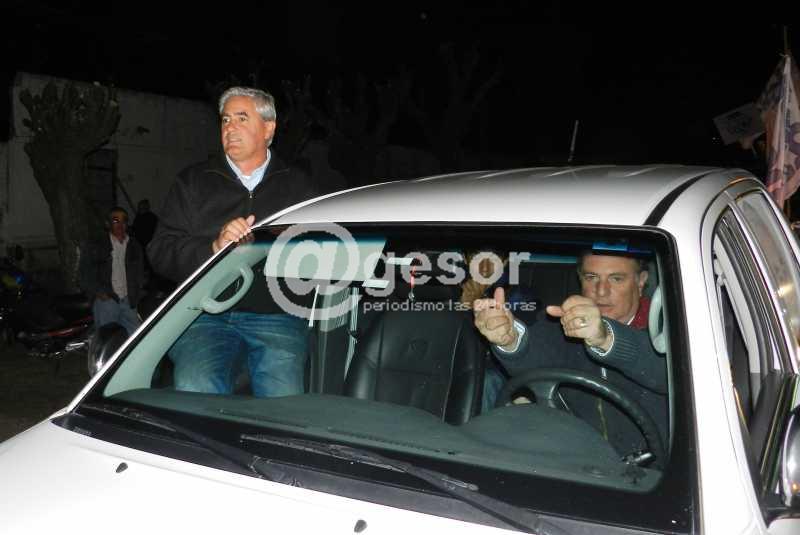 Previo a seguir con el final de la caravana hacia el acto en club Praga, Bascou descendió de su vehículo y recorrió tramo de la ruta para saludar a la gente que estaba junto a la carpeta asfáltica y a quienes aguardaban en vehículo para acompañarlo en el recorrido final.