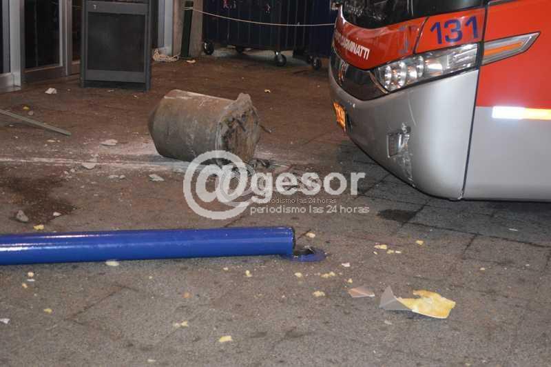 De un momento a otro el coche subió el cordón de la plataforma 4, derribando el pilar que se encontraba en ese andén, como así también la columna que indica el número del mismo. Por este motivo, el ómnibus terminó impactando contra la parte trasera de la agencia, que es donde se depositan las encomiendas, haciendo ceder el fuerte impacto, toda la estructura superior e inferior del local de CUT.