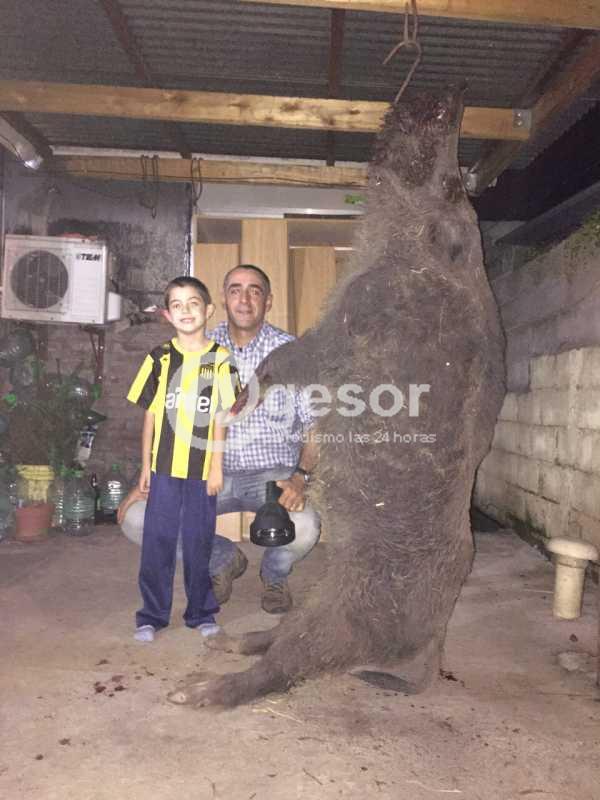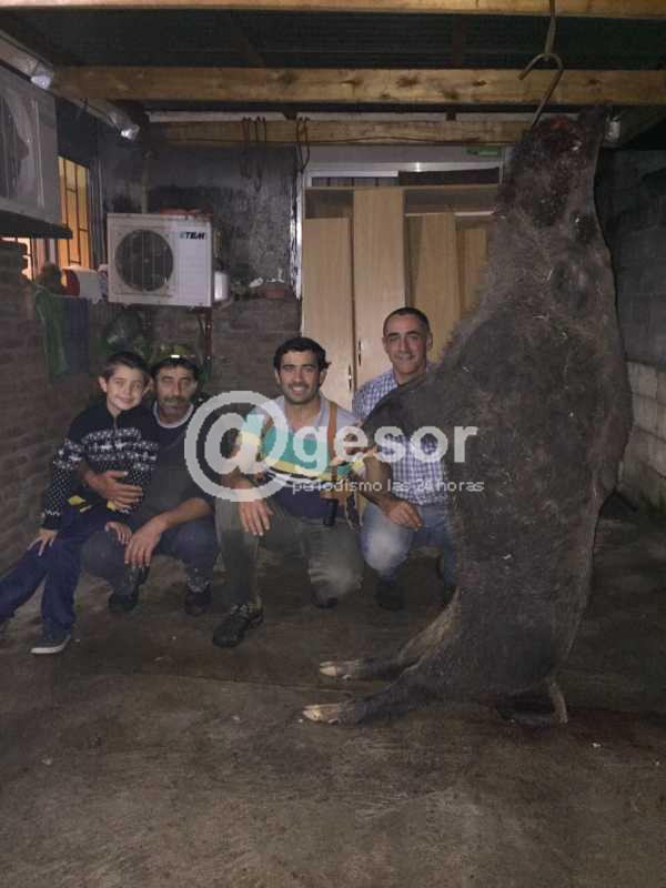 Un chancho jabalí de 178 kilogramos fue cazado por un grupo de vecinos doloreños en la zona de Paraje Bizcocho, en el departamento de Soriano.