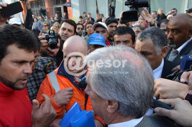 Los trabajadores del Sindicato Único de la Construcción (SUNCA) esperaron al Presidente Vázquez en las puertas de la Asociación Agropecuaria para entregarle una serie de planteamientos. Vázquez saludó a los escolares y demás personas que se encontraban allí y fue al encuentro de los sindicalistas, escuchándose algunas voces “menos reuniones y más trabajo queremos”. “Somos los mismos que le juntamos los votos. Trabajo queremos”. “La clase trabajadora ha sostenido este gobierno”.