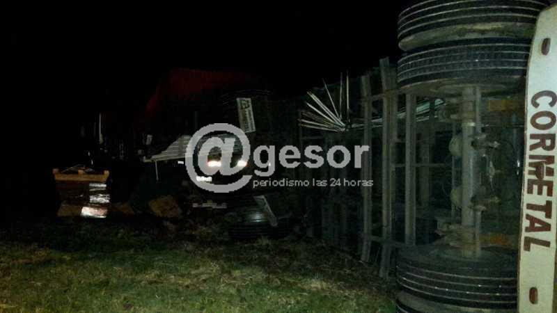 (por Martín Corujo) Sobre las 23:50 horas de este lunes un camión con zorra protagonizó un accidente carretero en el kilómetro 251 de la ruta nacional N°2.