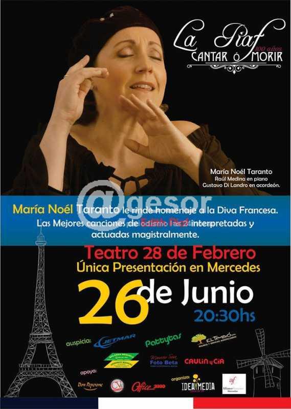 En el año que se cumple el centenario del nacimiento de “el Gorrión de París” la cantante uruguaya María Noel Taranto ofrecerá un recital en su homenaje en el Teatro “28 de Febrero”.