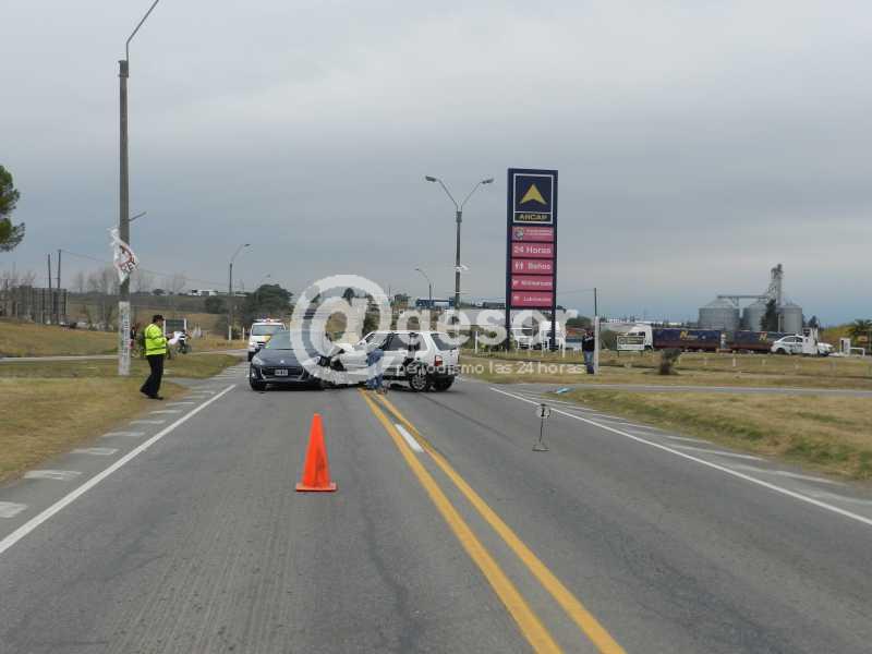 Por Ruta 2 circulaba de Norte a Sur el Fiat Uno matrícula KMA 8325 y el Peugeot LEB 678 de Argentina que salía de una de las estaciones de servicio para girar en el trébol, miró hacia la derecha y no venía ningún vehículo, luego hacia la izquierda y recién se percató de la presencia del Fiat Uno que impactó en el lateral del Peugeot y la violencia del golpe hizo girar a ambos vehículos para quedar en la posición que muestra la fotografía.