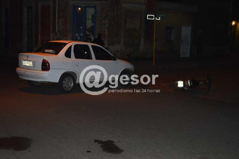 En horas de la noche de este sábado, un auto y una moto fueron protagonistas de un accidente de tránsito en la intersección de las calles 28 de Febrero y Ansina. Por la primera de las nombradas y con preferencia de paso, se dirigía la moto marca Yasuki, matrícula KMQ- 062, guiada por la mujer con iniciales M.J.R.C., mientras el automóvil lo Chevrolet Corsa, matrícula SBF- 4662 lo hacía por la otra arteria, siendo conducido por el hombre de iniciales R.G.F.R.