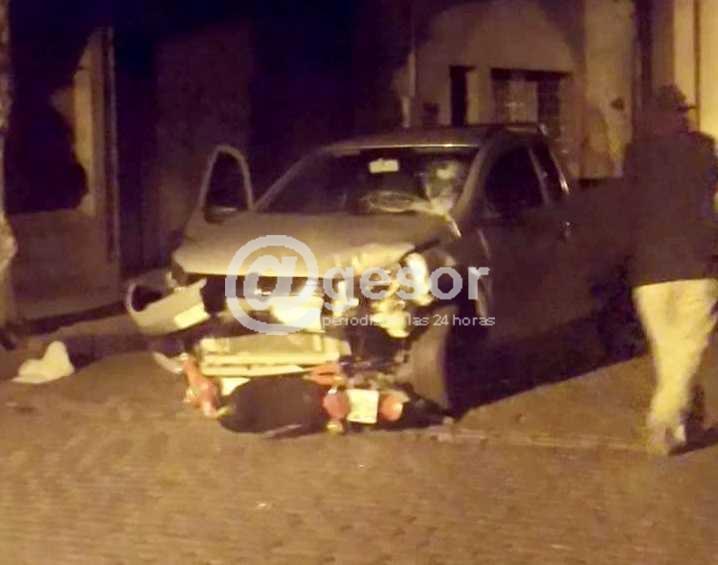 (Actualizado). Minutos antes de la 1.00 de la madrugada de este viernes ocurrió siniestro de tránsito que dejó dos personas lesionadas, cuando solicionaron la camioneta Volkswagen Saveiro KMB 3980 conducida por Waldemar Lima, que transitaba por Ferrería de Oeste a Este y la moto Honda 70 cc KML 187 en la que viajaban dos personas, José Enrique Godoy de 39 años y Paola Graña de 36, que lo hacían por Colón de Norte a Sur.