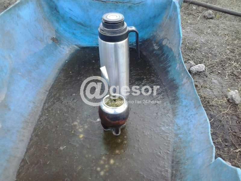 En la fotografía se puede apreciar claramente como termo y mate fueron cómplices de la helada registrada en la mañana de este miércoles.