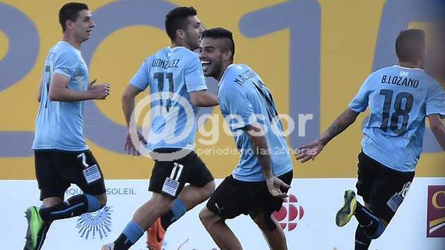 Uruguay: Guillermo De Amores; Mathías Suárez, Mauricio Lemos, Erick Cabaco,  Federico Ricca; Gastón Faber, Fernando Gorriarán (Andrés Schettino), Nicolás Albarracín (Ignacio González), Brian Lozano;  Michael Santos y Juan Cruz Mascia.