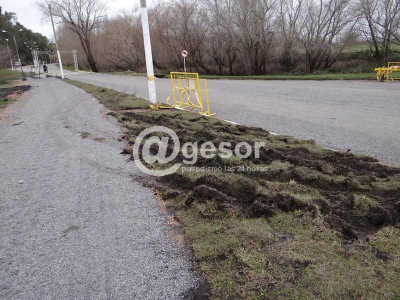 Según se pudo constatar que alguien transitó con un vehículo por el cantero, destrozando parte de los nuevos panes de césped que se habían colocado días atrás, así como también causando otros daños en la estructura del cantero.