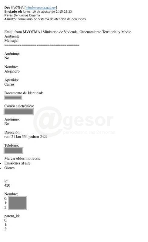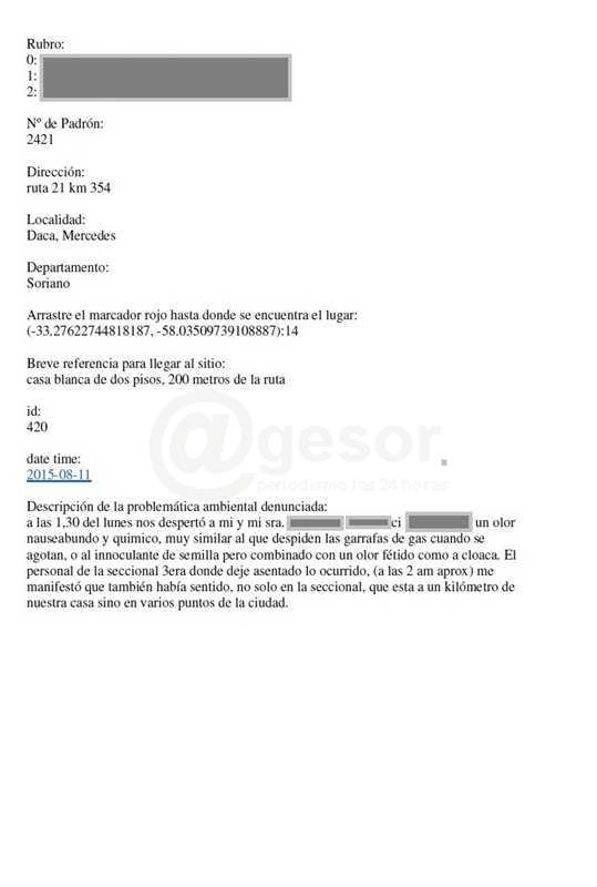 (*) A la denuncia que fuera realizada vía correo electrónico a la DINAMA (ID 420) que acompaña esta nota decidimos, por obvias razones, preservar los nombres y señas particulares de las personas y las empresas mencionadas.