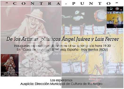 Este viernes 14 a las 19,30 horas en “Casa de las Artes” (Brasil esquina España, Fray Bentos) será la inauguración de la muestra de los artistas mercedadios Luis “Pori” Ferrer y Ángel Juárez. La misma se denomina “Contra-Punto” donde el espectador podrá encontrarse con dos estilos bien distintos y evidentes de trasmitir mediante el lenguaje plástico.