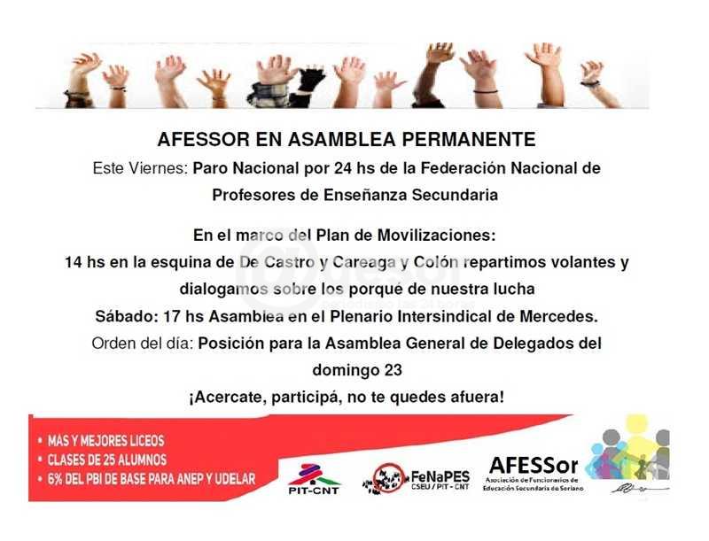 Sábado: 17 hs Asamblea en el Plenario Intersindical de Mercedes.