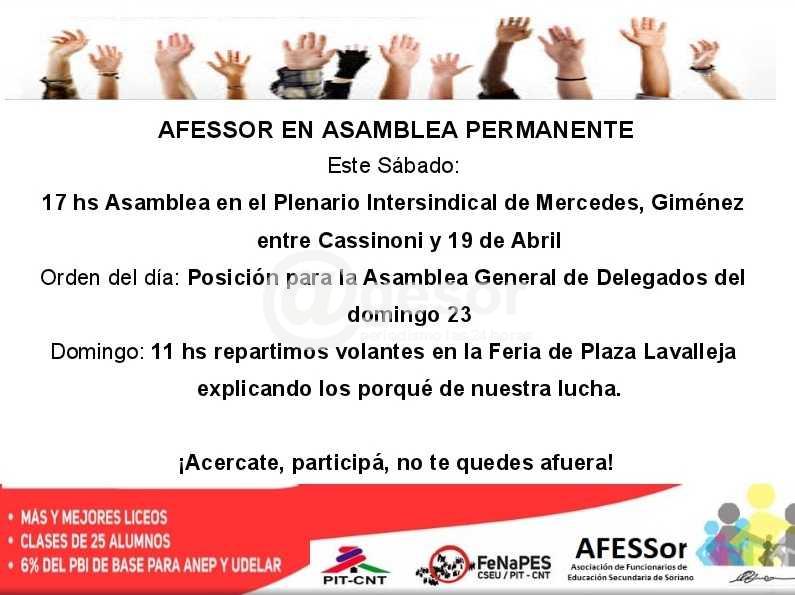 17 hs Asamblea en el Plenario Intersindical de Mercedes, Giménez entre Cassinoni y 19 de Abril