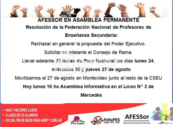 AFESSOR EN ASAMBLEA PERMANENTE. Resolución de la Federación Nacional de Profesores de Enseñanza Secundaria: